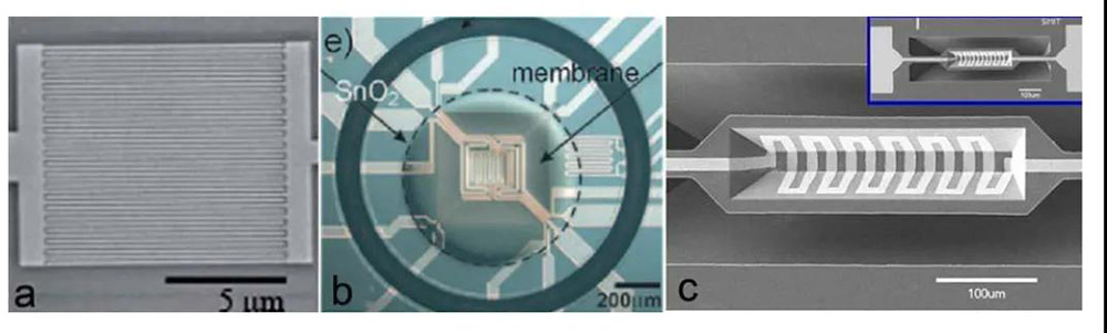 Hasta ahora, ha habido algunos ejemplos de sensores MEMS basados en películas MOS pulverizadas, incluidos sensores micromecánicos WO3 y películas de detección que contienen heterouniones p-n: Las películas de SnO2-NiO tienen una alta sensibilidad al H2S a temperatura ambiente. Sin embargo, la sensibilidad de la mayoría de las películas pulverizadas sigue siendo mucho menor que la de los materiales MOS nanoestructurados sintetizados químicamente convencionales. Esto se debe a que la estructura amorfa y de alta densidad limita la interacción entre el material sensible y el gas circundante.